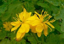 הפרחים מורכבים מארבעה עלי כותרת צהובים, כל אחד מהם באורך 18 מ"מ, עם שני גביעים. גם טיפוס המכיל פרחים כפולים מתקיים באופן טבעי. הפרחים מופיעים מאביב בסוף הקיץ, מאי עד ספטמבר, במקבצים של כ 4 פרחים.