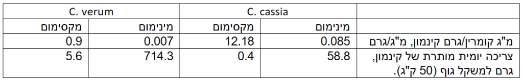 הערכת רעילות וצריכת קינמון קסיה