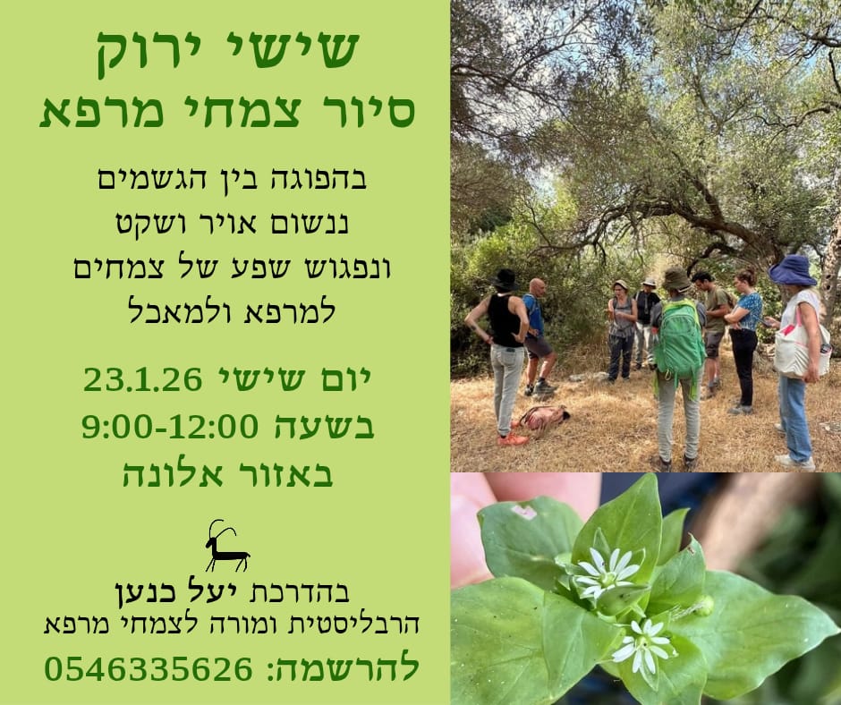 10/14-6/25: קורס ליקוט צמחי מאכל ומרפא עם יוני בן-דור בן עשרה מפגשים הבהרה: "על עלים" אינה אחראית בשום אופן לתכני הפרסום, ולתכנים אשר יועברו באירוע