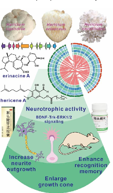 Hericium erinaceus (H. erinaceus) היא המובילה מבין פטריות Hericium, ומתורבתת בקנה מידה גדול. בנוסף, כמה מינים חדשים כמו ה- Hericium alpestre, Hericium coralloides, , ו-Hericium rajendrae התגלו ותועדו בהדרגה [1, 2]. הנטייה לאחרונה אחר בריאות ותזונה הביאו את הפטרייה העשירה והביו-אקטיבית הזו אל אור הזרקורים. מאמר זה בוחן את השימושים המסורתיים של פטריות Hericium, המבנים הכימיים והפעילויות הביולוגיות של המטבוליטים המשניים שלהן, כמו גם את התפקיד המרכזי של טכנולוגיות האומיקה בתחום זה (איור 1).