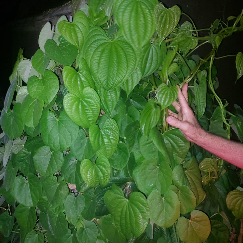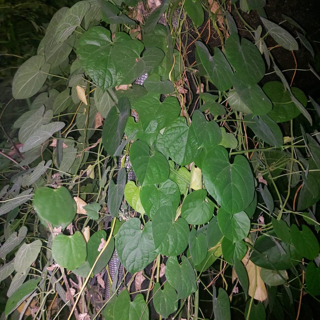 על קיר החממה פגשנו צמח מטפס עם עלים יפהפיים בצורת לב: דיוסקוריאה בולביפרה (כי יש לה פקעות-אויר, כעין תפו"א שגדל על הצמח) והוא רעיל ומאוד מר.